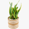 A dwarf variety of the famed snake plant family, the Sansevieria Golden Hahnii sports beautiful variegated leaves in grey green with dark green bands and golden yellow margins. It is a low maintenance plant that is hard.